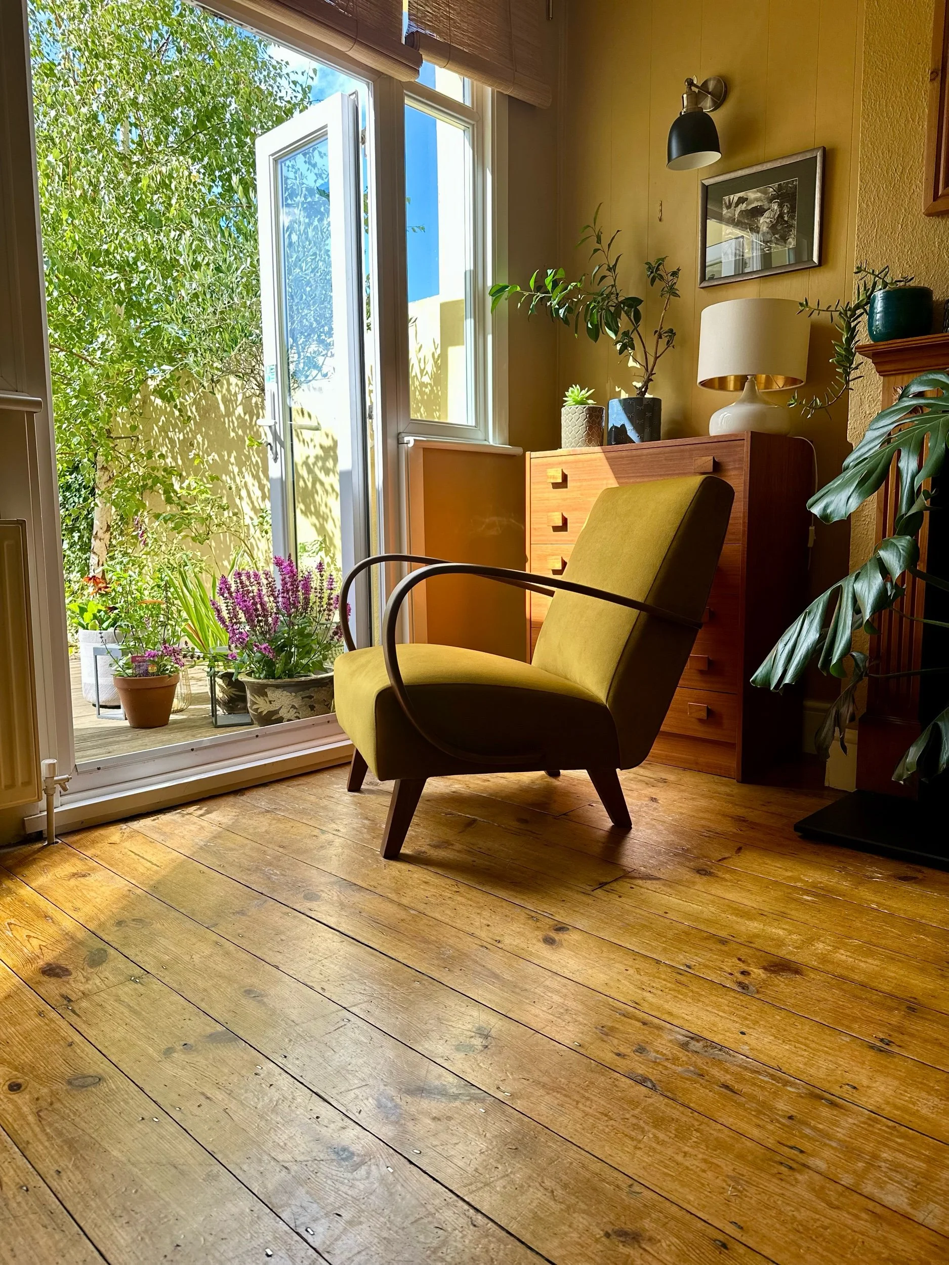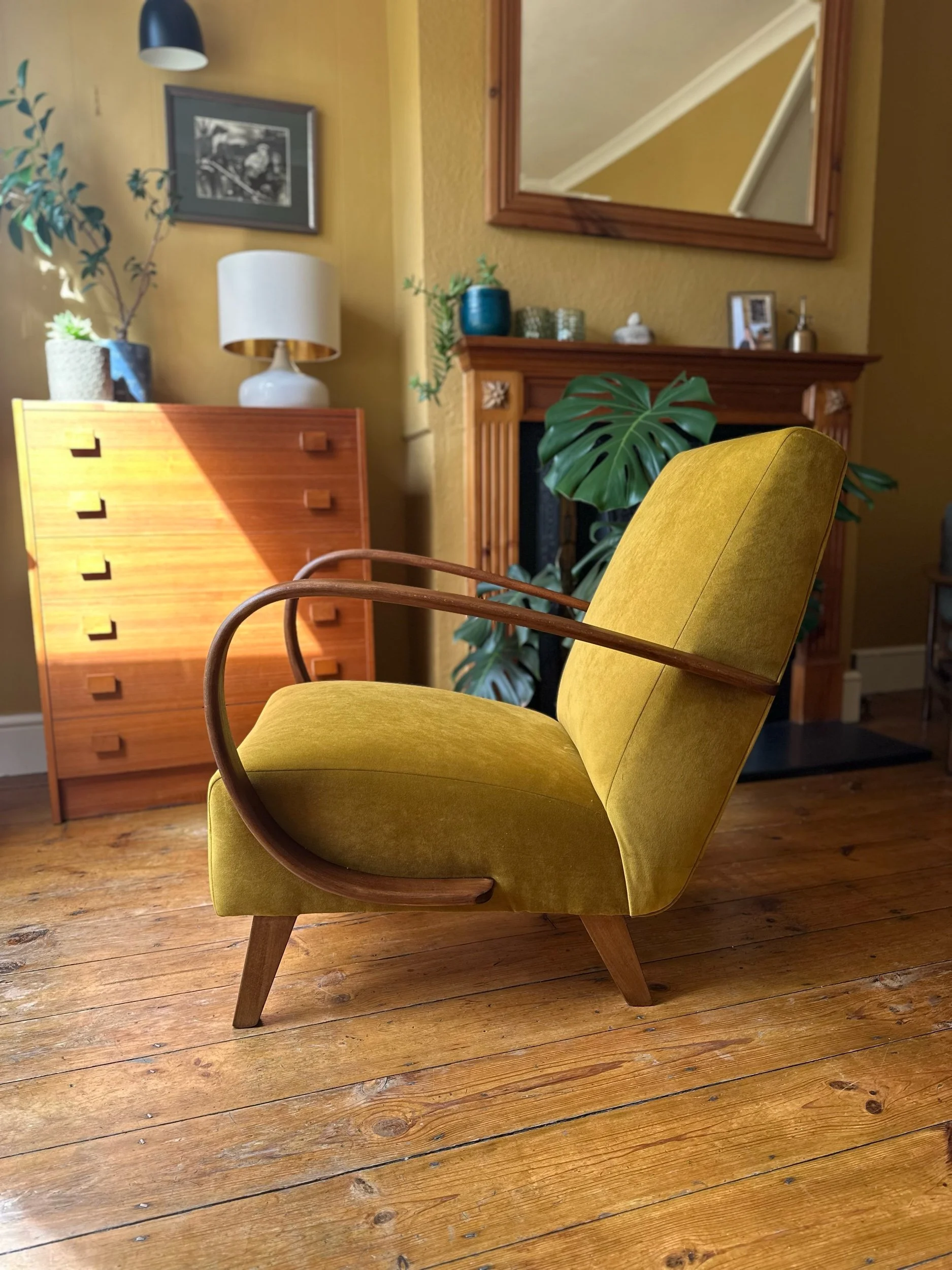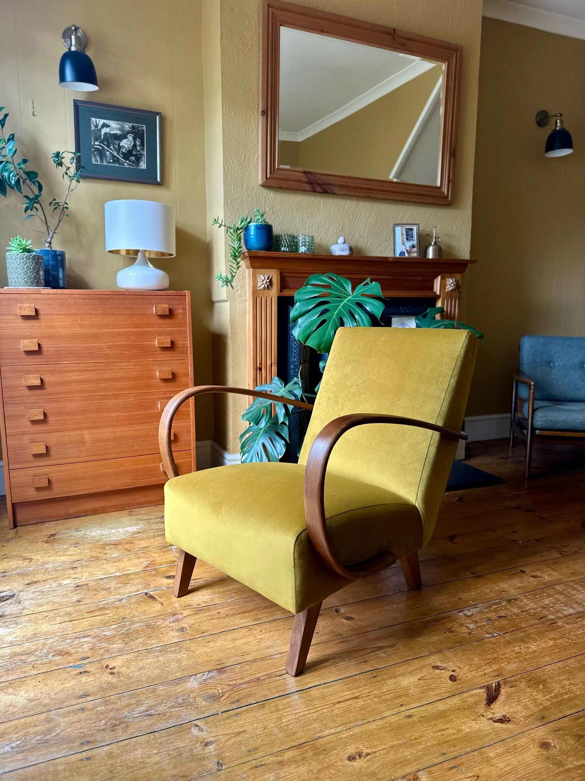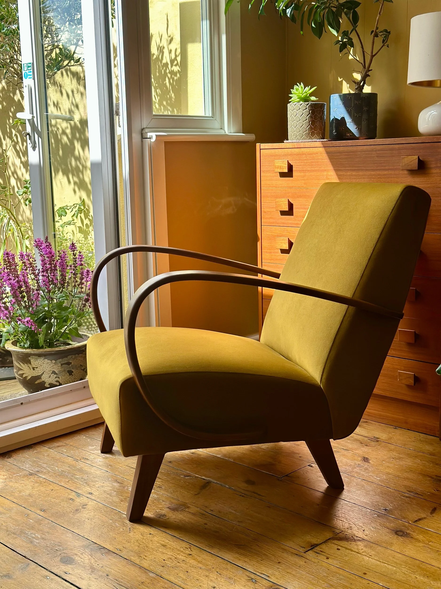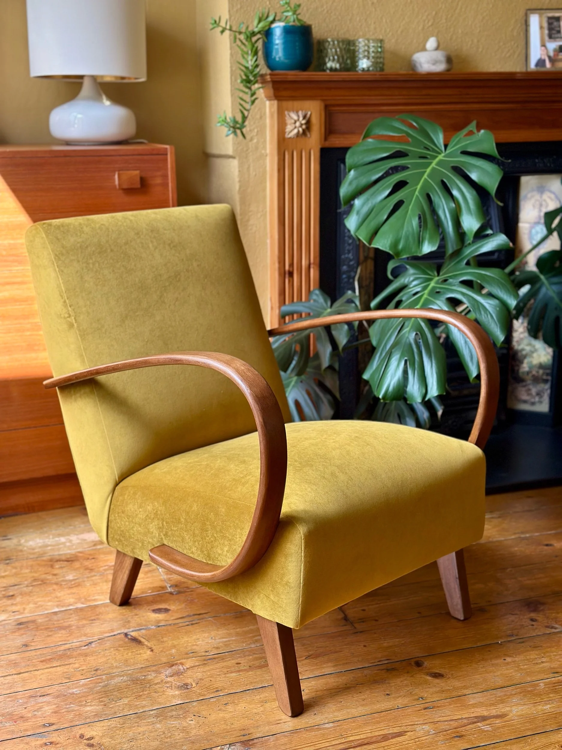 Iconic Halabala Bentwood Armchair in Mustard Velvet